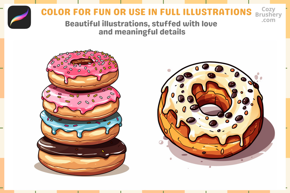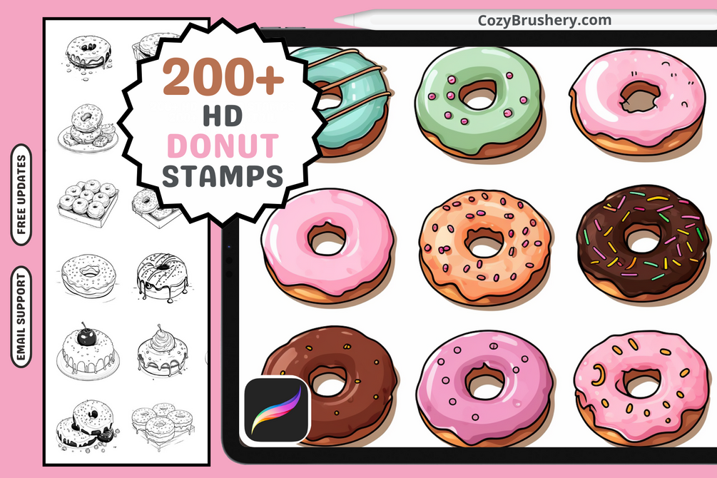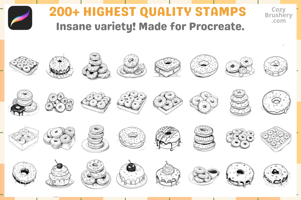 Procreate Stamps: 200+ Donut Stamps for Fun Food Illustrations, Stickers, Patterns, and Digital Sketching