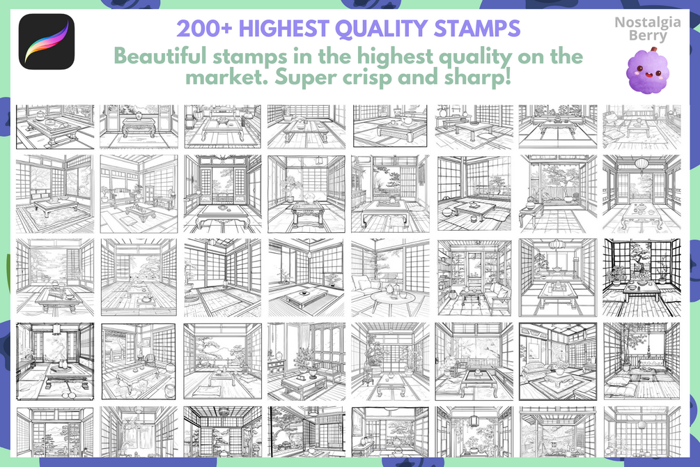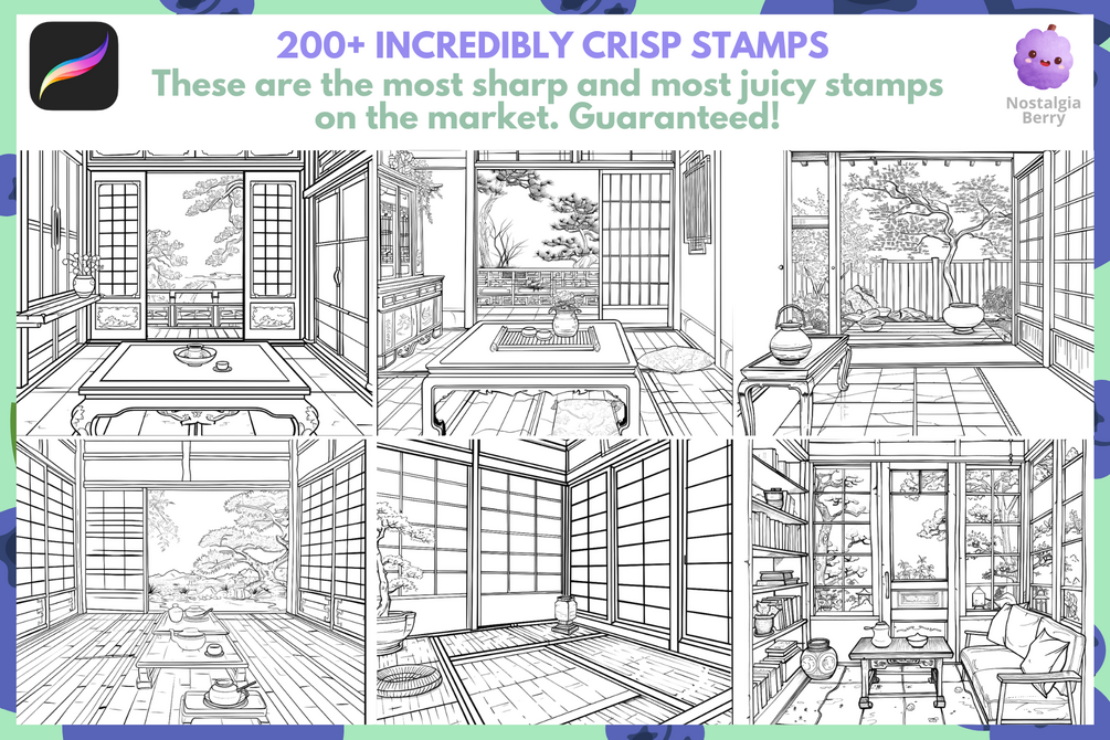 Procreate Stamps: Japanese Room Full Room Stamps for Drawing, Manga, Anime, Backgrounds, and Digital Art