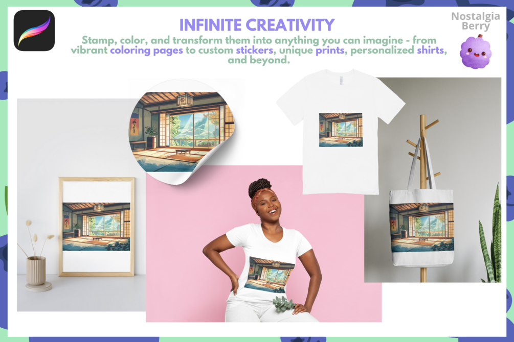 Each stamp is designed to give you a solid base for your creativity. Customize your room with colors, shading, and personal touches to match your vision, whether you’re going for a minimalist zen vibe or a more detailed manga-inspired aesthetic.