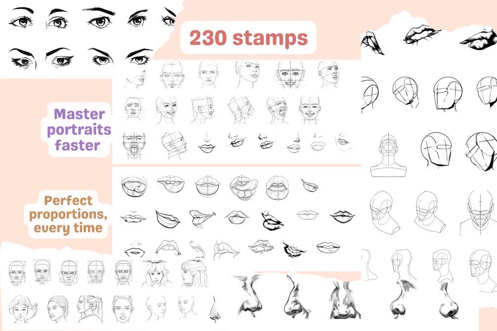 Procreate Stamps: Portrait Study Stamps for Faces, Anatomy, Lips, Mouths, and Heads – Perfect for Artists and Sketching