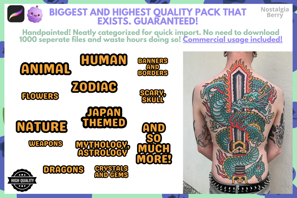 Use these stamps and brushes for tattoo designs, illustrations, digital art, or even just creative doodling. With over 6000 options, you'll always have the right tool at your fingertips to bring your artistic visions to life.